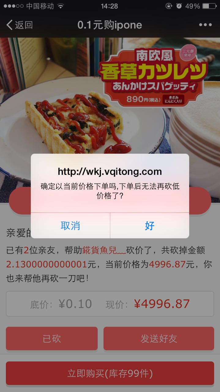 2、可设置是否必须砍掉底价才能下单;