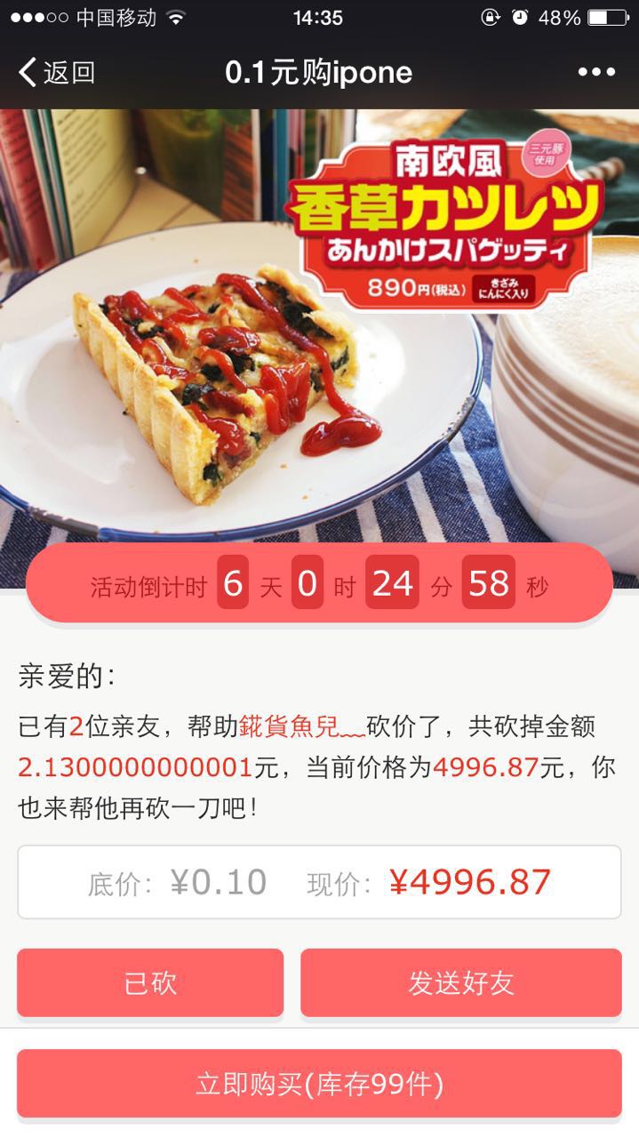 1、在设定的时间范围内,用户可以邀请每一个好友就能让其帮忙砍一次;